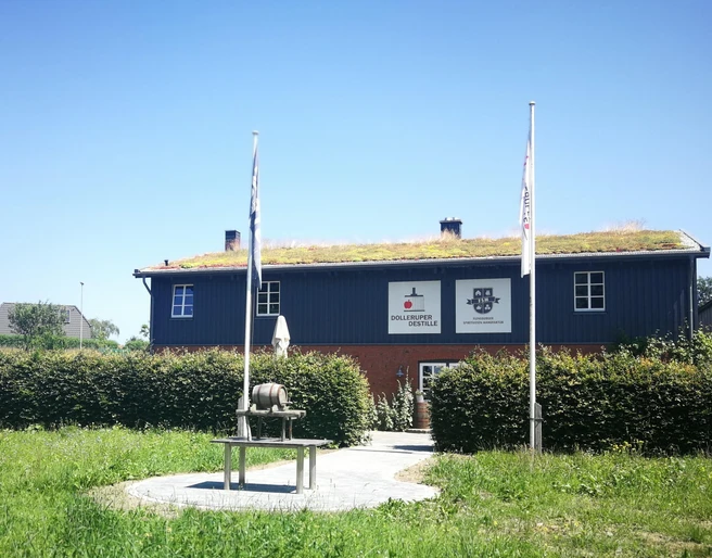 You will find the Dolleruper Destille located in the village of Dollerup, not far from Flensburg. It is the northernmost fruit distillery in Germany. Since 2003 exquisite distillates are hand-crafted from various types of fruits. 2014 the Destille was taken over by Dr. Axel Hartwig and Werner Sauer. The two of them extended their product range with several brandies like German whiskey, rum and various sorts of gin. Some of them made to order by customers, but mostly produced single-handedly. During September, the ripe fruits are being squeezed into juice. Private customers can let their homegrown apples, pears and other fruits be pressed here, and even let the Brennmeister (master distiller) yield high proof delicacies from them to order. The Dolleruper Destille is centrally located at main road Nordstraße. The distillery not only has its own farm shop, where you can purchase their products, on the first floor it even boasts a venue that is frequently used for private and company parties as well as musical events and even jazz concerts.