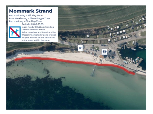 Stranden i Mommark er ejet af Mommark Marina, og det er Marinaen der holder stranden ren og pæn hele sommeren.