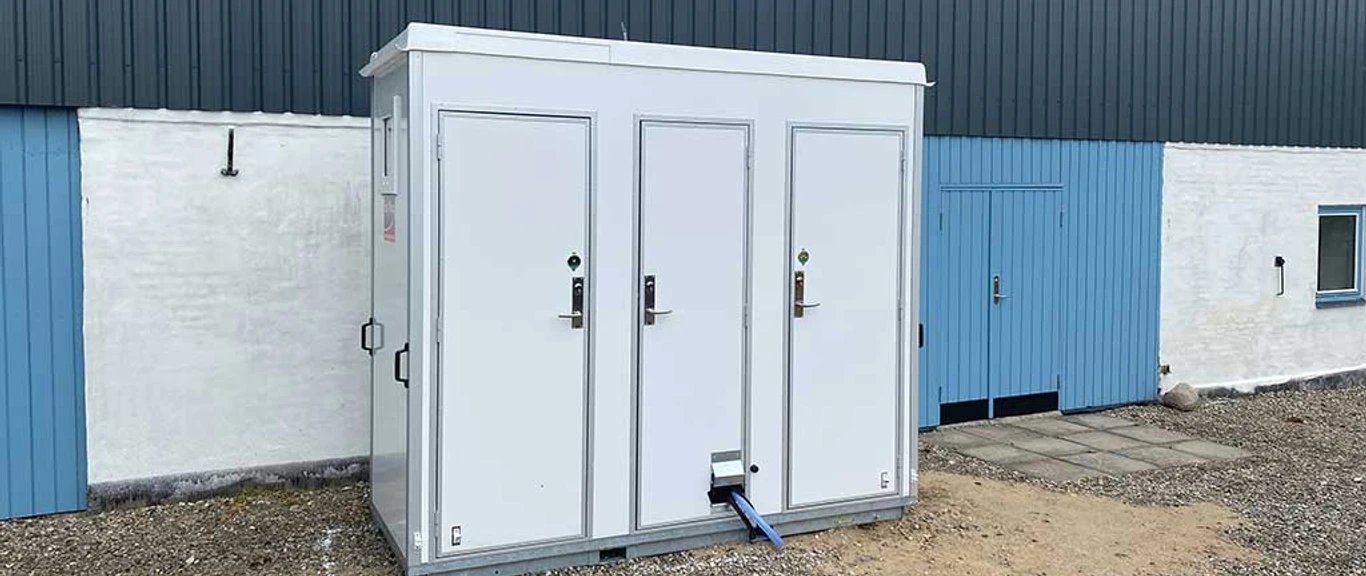 Toilethus med vandhane.