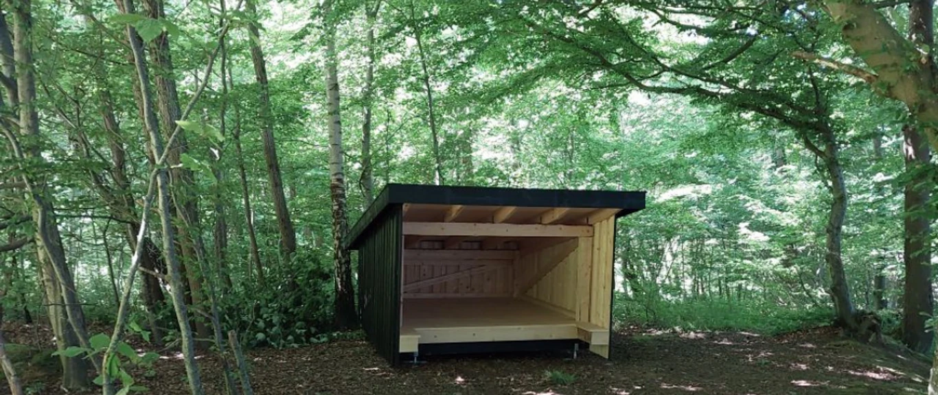 The shelter is located at a simple overnight site in the middle of the Lambjerg Indtægt forest. It can accommodate a maximum of three people, and stays are limited to two nights.
