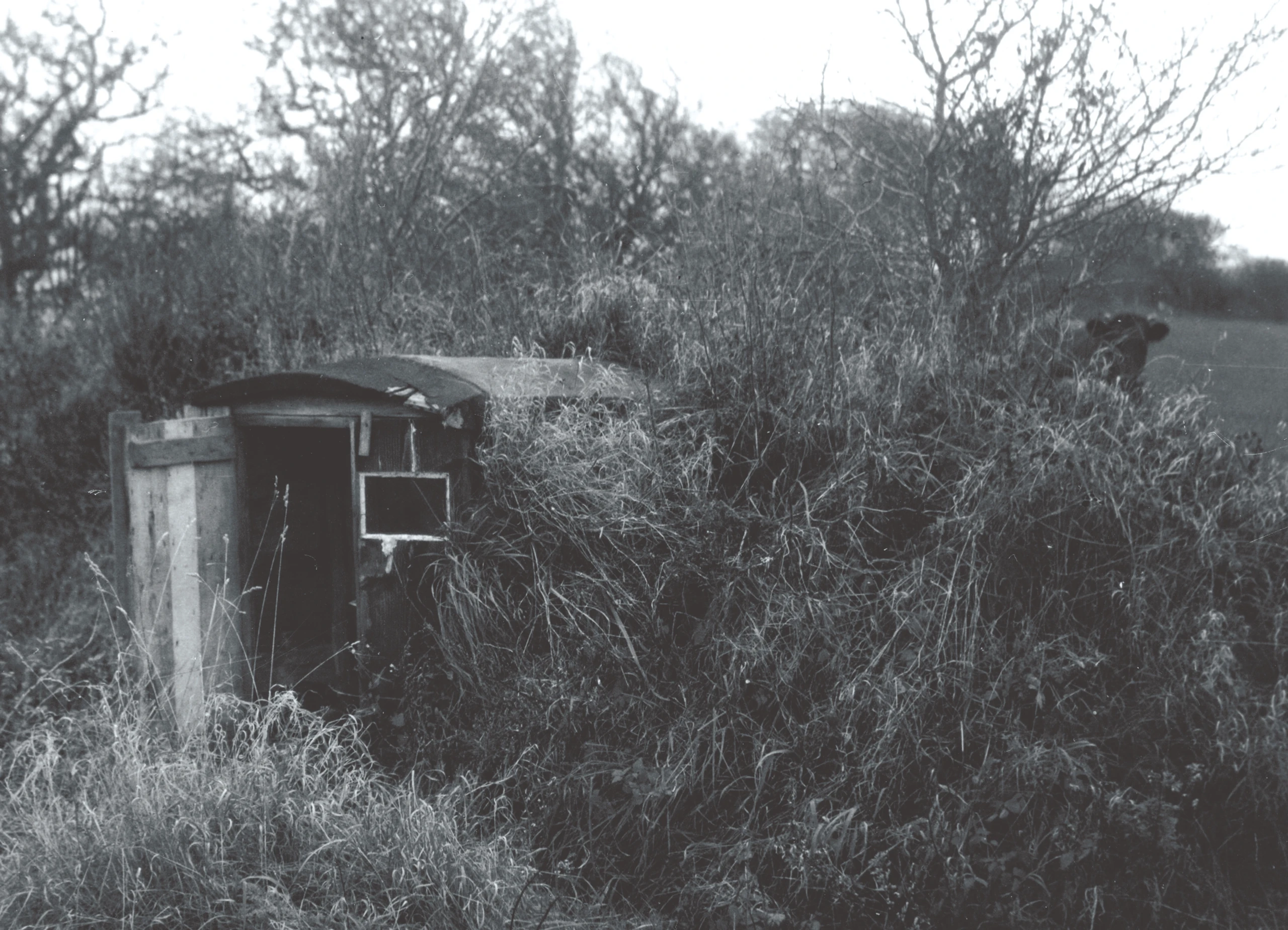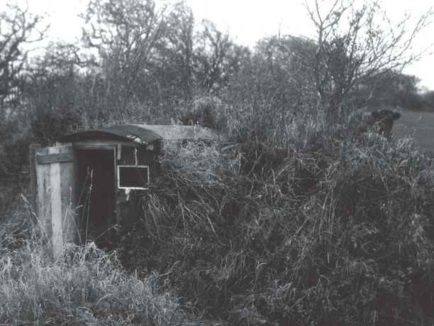 200 m west of this location, after the 1920 plebiscite, lived a man named Adolf Ewertsen. He was called Adolf Tysker (Adolf the German) because he lived in Lüdersholm (Lydersholm) before the border was moved and did not want to become a Danish citizen. Thus, when Lüdersholm became Danish Lydersholm, he packed his things and moved to the German side. Here, he lived in a hole in the ground with a cow and some sheep, because he had no money to buy a house. He died around 1924 and was laid out at the home of the mayor Johannes Edlefsen at Berbeckshof. His family in Lüdersholm paid for his burial in the Ladelund cemetery in Danish kroner. Descendants of the Ewertsen family still live in Lydersholm today.