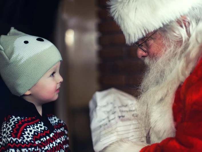 Santa distributes bags of sweets to children. NB: Children must be accompanied by an adult.