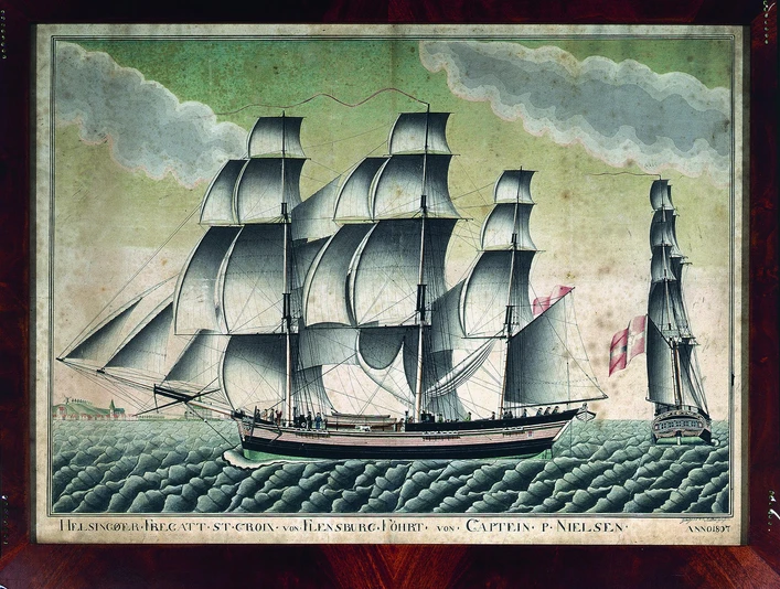 The merchant's store at Große Straße 24 exemplifies the importance of the West Indies trade, which established Flensburg's fame as a sugar and rum town. In 1755, the NEPTUNUS was the first Flensburg ship to sail the Danish West Indies. Flensburg subsequently developed into a flourishing port and trading town. The merchants and shipowners made skilful use of the advantages that had accrued to them and to the town through its membership of the Kingdom of Denmark in previous centuries. The courtyards to the left and right of the long roads between Südermarkt and Nordertor were bustling with activity. Since the Middle Ages, merchants and tradesmen had acquired land here. They preferred the area facing the harbour for convenient loading and unloading of ships.