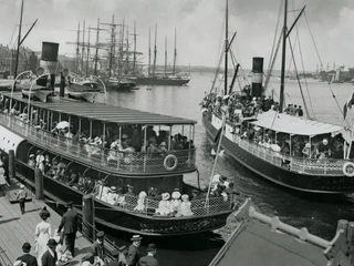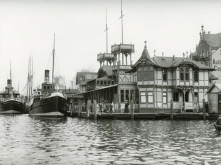 Pavilions were built in Gravenstein and Sonderburg to handle passengers and transport goods. In 1896, Flensburg received a large steamship pavilion. At that time, the ERNST GÜNTHER was launched by the Flensburger Schiffsbau-Gesellschaft as the prototype of a saloon steamer. Fjord excursions became the cruise pleasure of the little people. There is but one surviving steamship of this period, the ALEXANDRA. The saloon steamer, built in Hamburg in 1908, was considered the most beautiful ship in the Fjord fleet. Today, the restored "Alex" proudly and regularly sails the Fjord between May and September as a floating landmark of the city of Flensburg.