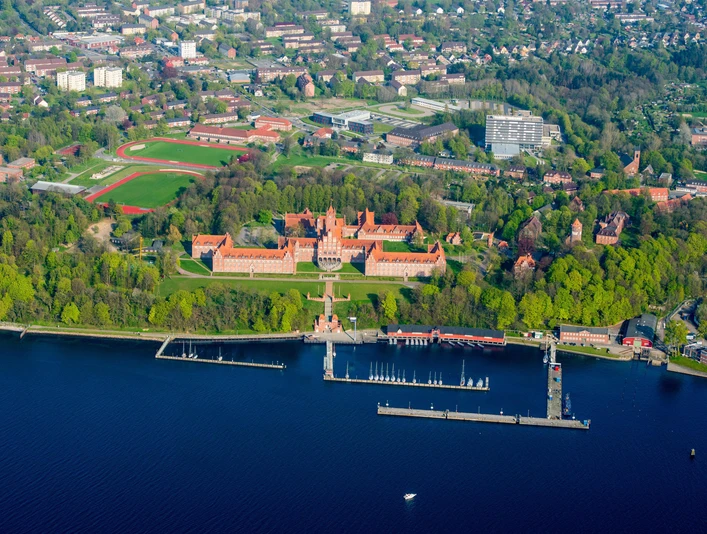 The naval school in the Flensburg district of Mürwik, built in the style of north German brick Gothic, has been the central training center for German naval officers since 1910. With its over 200 m long water front and its approx. 60 m high tower, it dominates the south bank of the Flensburg Fjord. It can be reached in about ten minutes by car from the center of Flensburg via Mürwiker Straße. The military history collection is housed in the former commanders' house. The collection on the grounds of the Naval School presents German naval history from 1848 to the present day. The small museum is currently closed due to facade renovation.