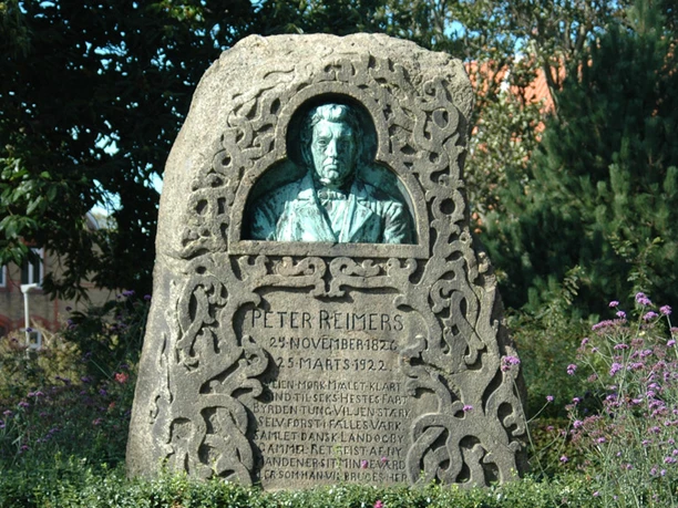 The memorial stone over Peter Reimers was made by sculptor Niels Hansen Jacobsen (1861-1941). The stone was erected by fellow compatriots in 1926 (see the stones backside).