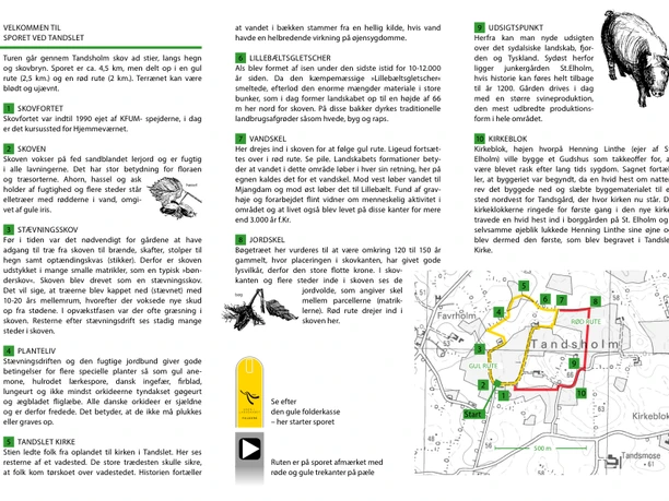 The Tandslet Trail of 2.5 - 4.5 km, lies approx. one km north of Tandslet village and leads you through the forest Tandsholm Skov along paths, past hedgerows and woods.